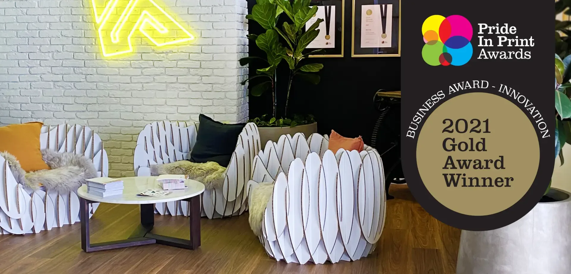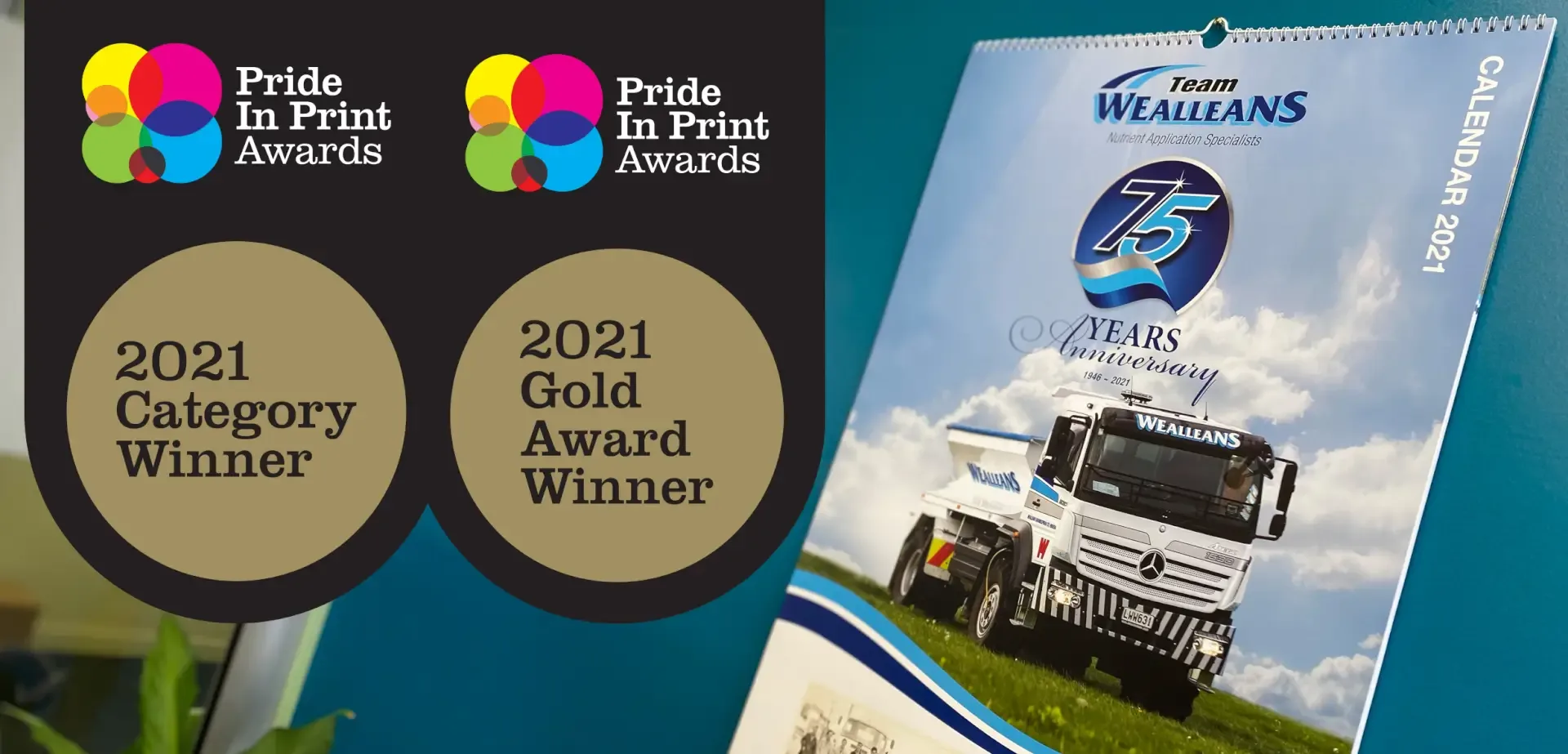 On 25th June, a contingent of Kale Print representatives attended the 2021 Pride in Print awards. A welcome celebration after the 2020 awards night was cancelled due to COVID restrictions. The team were honoured to be recognised amongst their peers as leaders in their field, displaying excellence in a variety of categories including the new Business Award Innovation category for their reception chairs and a prestigious overall category win for Promotional Print with the Wealleans 2021 Calendar.
